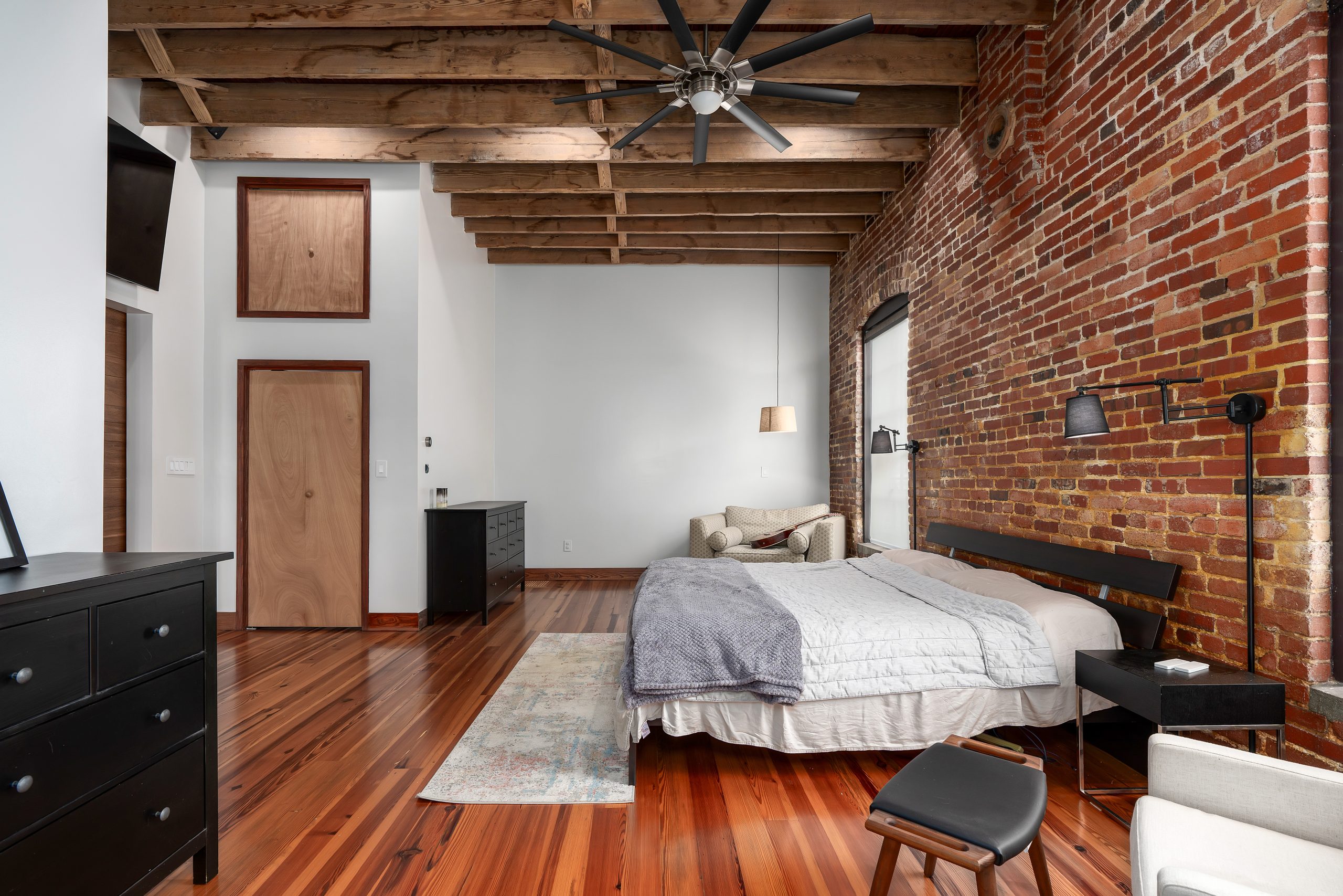 ~6,670 sq. ft. two-story loft renovation with 3 beds/ 3 baths, 2 half baths, bar, library, office, mother-in-law suite, gym, two-car garage / workshop, and more